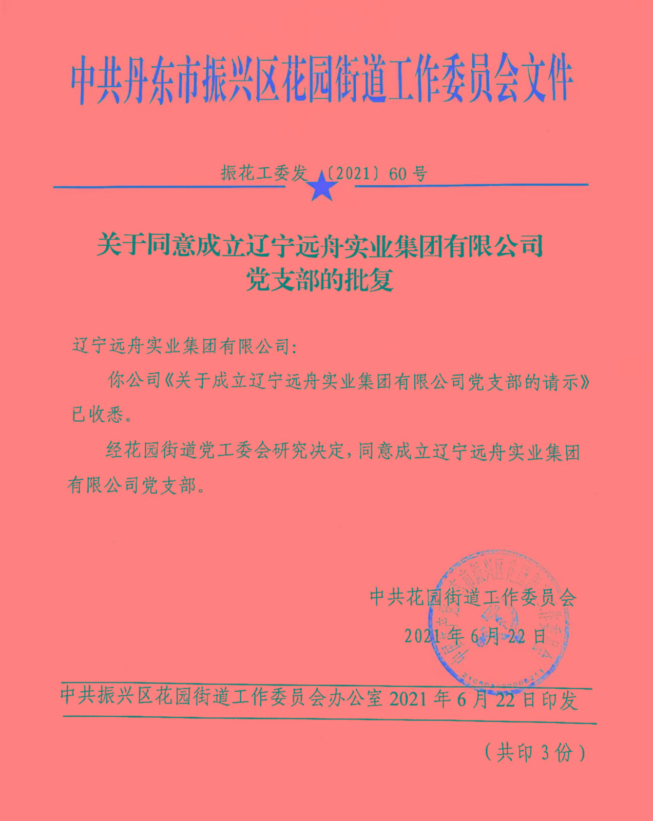 2021年06月———遼寧遠(yuǎn)舟實業(yè)集團(tuán)有限公司黨支部正式成立